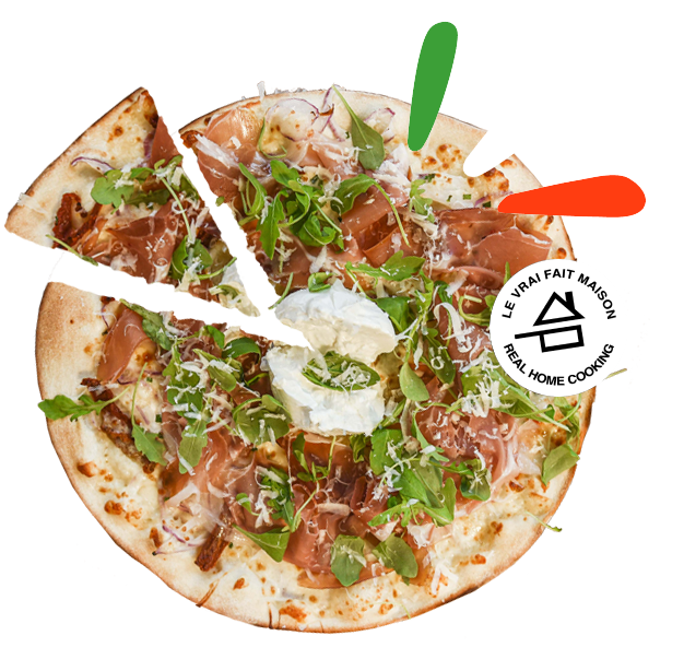 Savourez nos pizzas artisanales préparées avec des ingrédients frais et de qualité Italienne